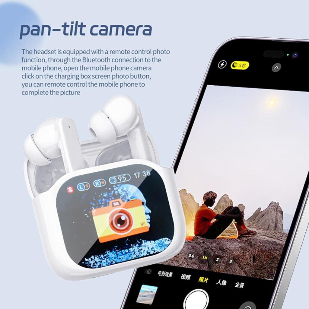 Touch Screen Case: With the Smart Charging Case, you can control earbuds volume, EQ modes, and more than 10 functions such as time, battery level, and setting alarms from the screen of the case without using your phone. Enjoy a truly smart experience